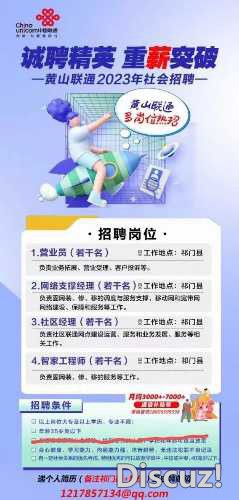 正文摘要:招聘營業(yè)廳受理人員9 y, X% Y# i# U: g. p0 r- f, [ 工作地點: 中國聯(lián)通祁門分公司9 B( J& z( V5 |( v3 N. o 要求:8 e/ l- v t1 Y8 z6 U* ]: R4 V% d0 C/ Q 1)年齡22歲—35歲(男女不限)" T9 }" x6 ... |